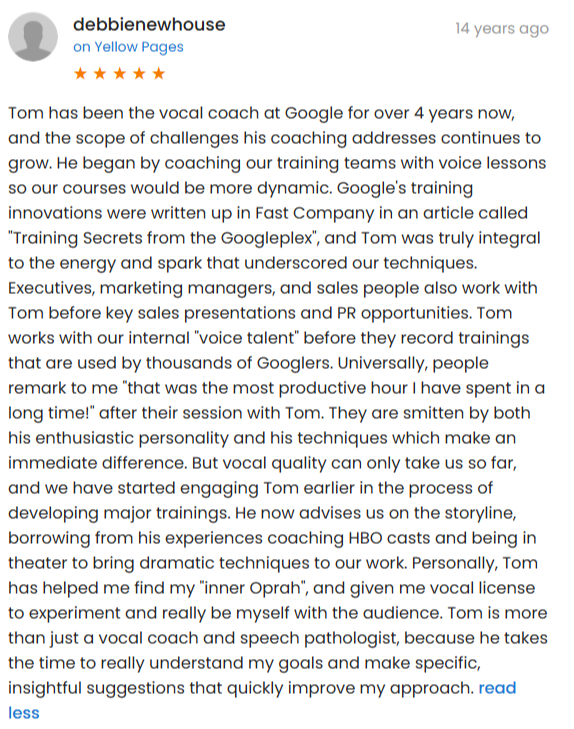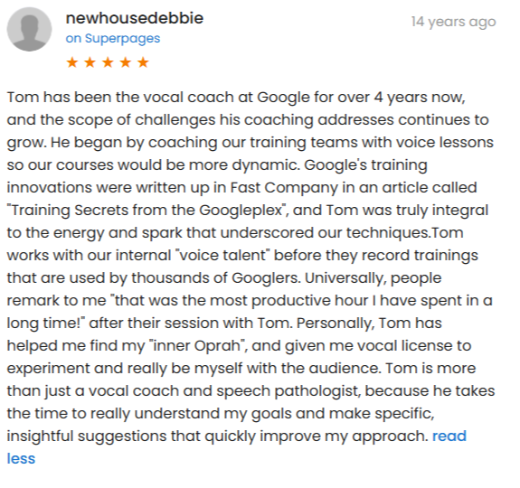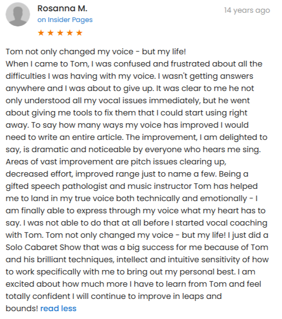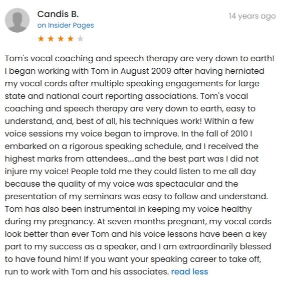 Real voices from real people who found their strength with Tom Burke Voice Studio.